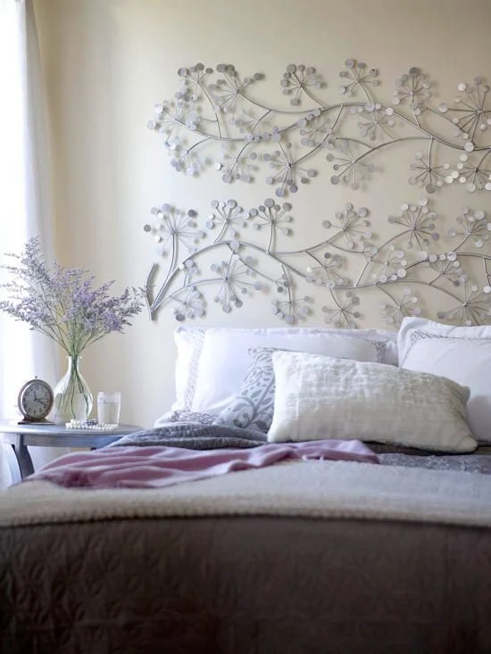 Delicate, beautiful, and elegant. A wall feature and a headboard in one. This captivating iron filigree in silver gives the room a pretty and elegant look. The branch design showcases the owner’s love for the outdoors and nature.