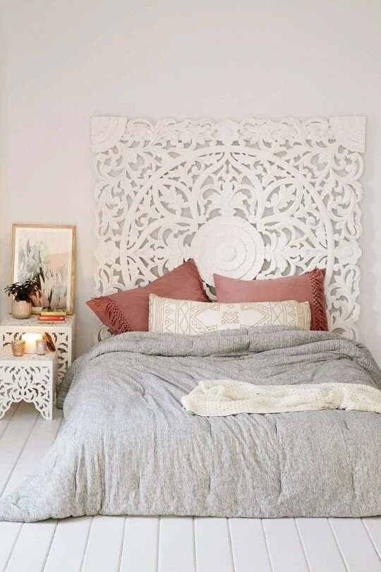 Bring in the mystery and charms of the east. The massive mandala carving gives the room a lovely Moroccan flair. The white mandala complements the modern and minimalist interiors while the carvings in natural wood tones bring in rustic vibes.