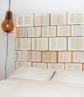 Any book lover will love this headboard idea! Collect your favourite books and use them to line the wall and serve as your headboard. You can even open the books to your favourite page, highlight your favourite lines, or display the covers for a more striking and colourful look.