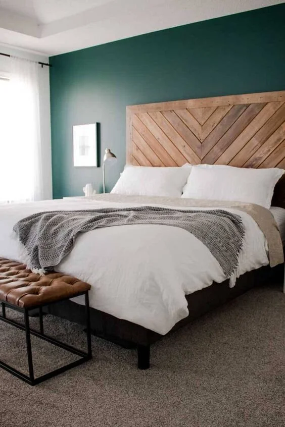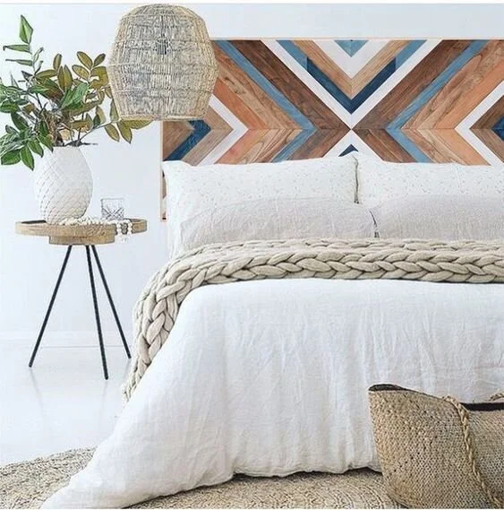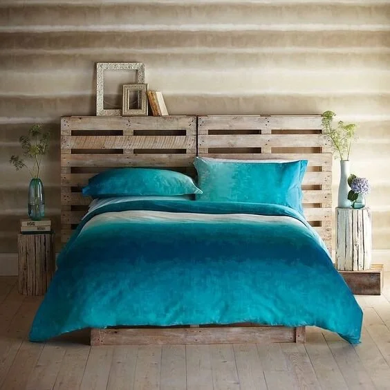 Get creative and bring in some colours to your bedroom! You can use pallets for this DIY repurposed wood project. The relaxed rustic warmth of wood shines through the rough and edgy piece. Get creative with patterns and colours!