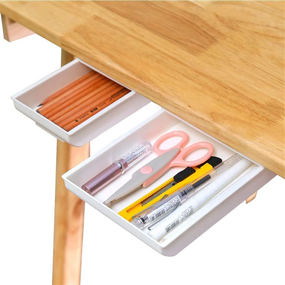 No drawers? No problem. These under-the-desk drawer trays are easy to install and can keep small office items like pens, earphones, chargers, clips, erasers, and the like hidden, organised, and within easy reach.
