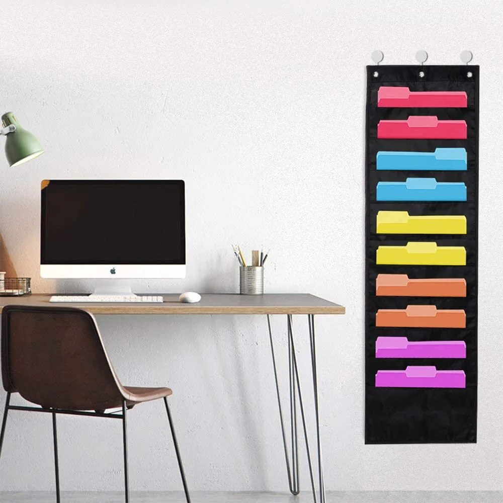 This cascading file organiser will keep your files handy and organised. Its tall and narrow design allows it to fit into most wall spaces. It contains ten pockets for optimised file organisation. Files in the vertical storage pockets are safe from spillage and other desktop accidents.