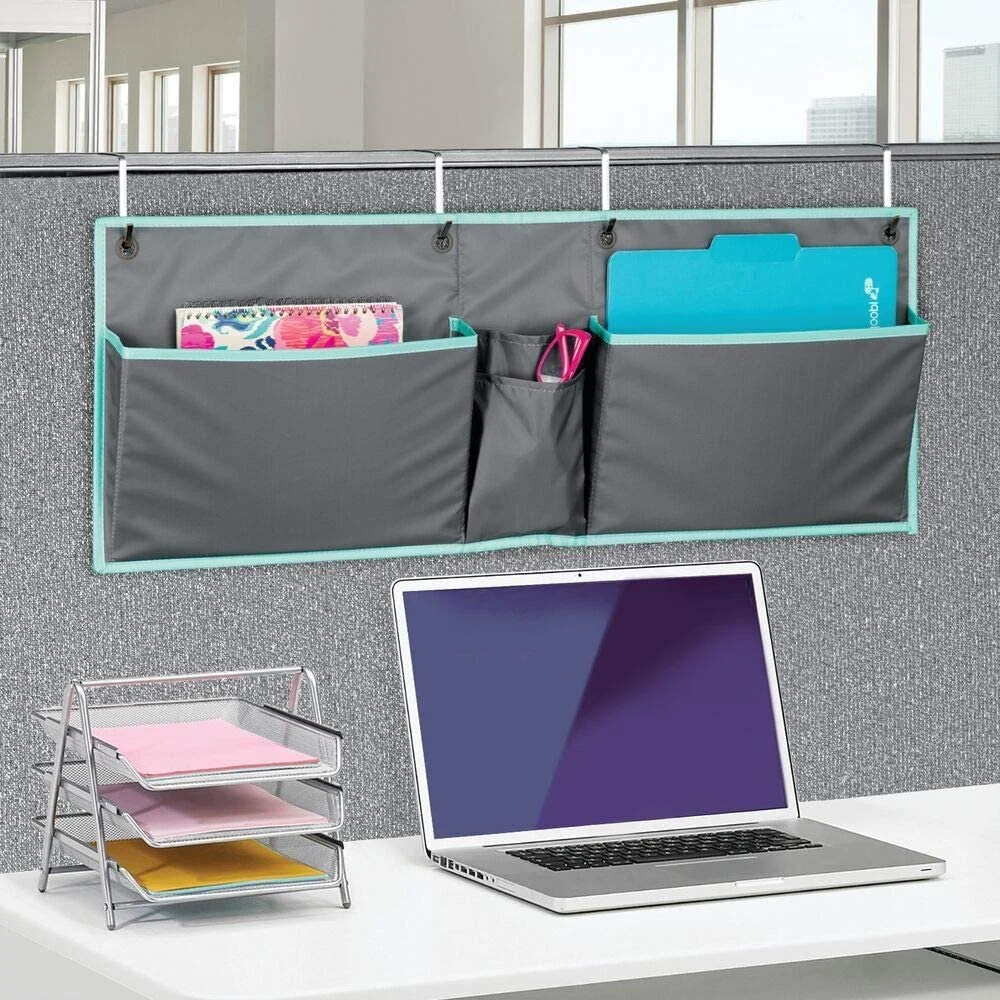 This pretty hanging pocket organiser will use up that empty wall space and instantly add storage and organising spaces to your home office. In stylish grey and teal, the organiser features two large pockets for file and larger items, and two small pockets for smaller items like your cell phone, keys, or glasses.