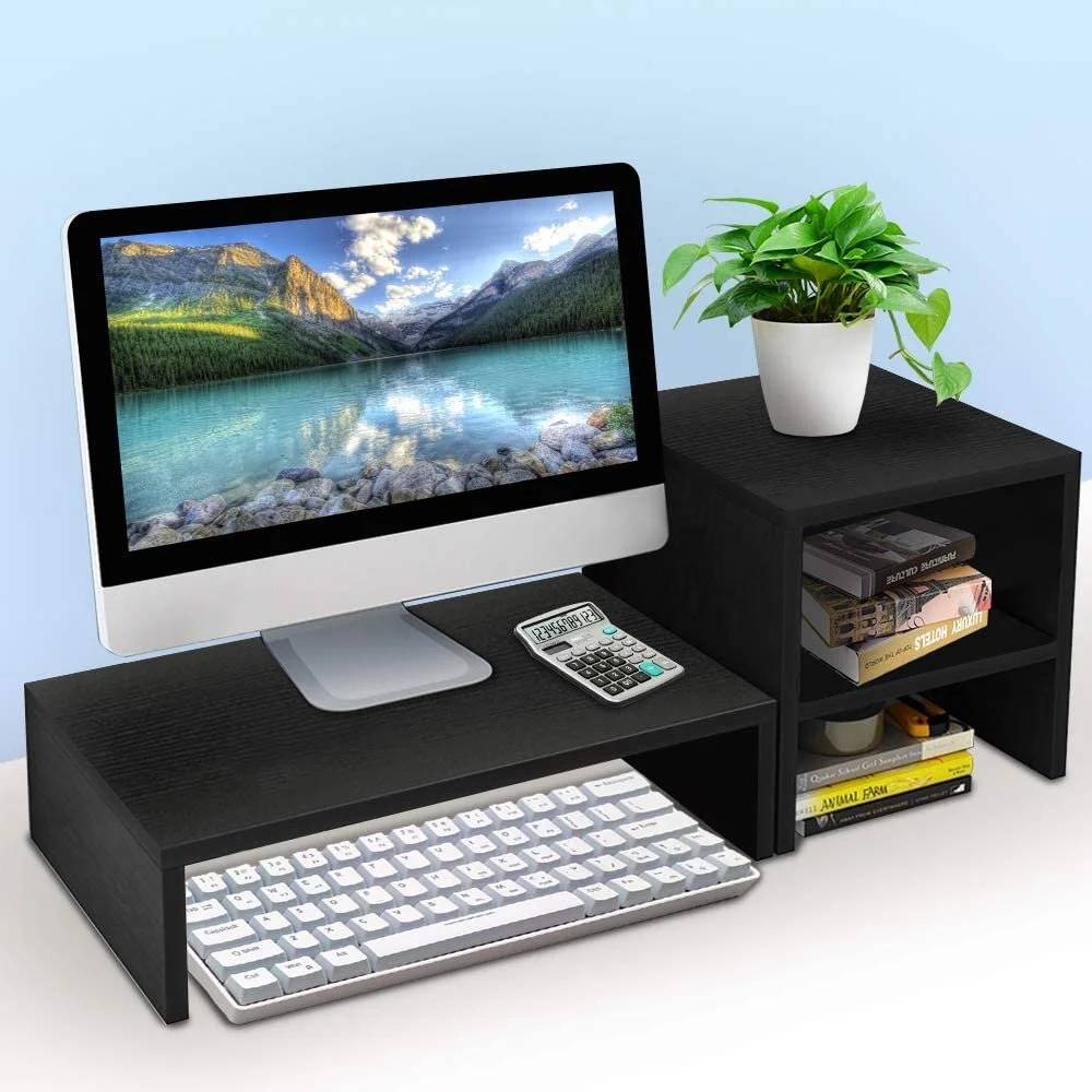 Create a cosy and beautiful workspace with this desk organiser and monitor stand duo. The organiser comes with shelves for more storage space. The ergonomically designed monitor stand keeps the monitor at eye-level and provides a space for the keyboard under and more storage options on top.