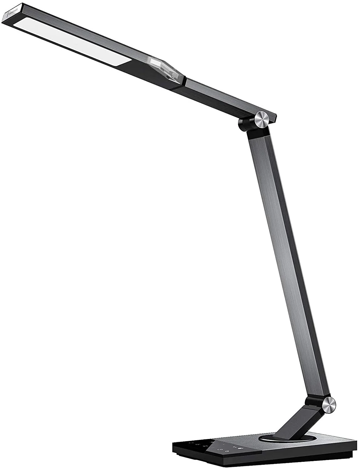 Sleek and innovative, this beautiful desk lamp is perfect for modern home offices. Made of durable metal, the design includes a multi-angled adjustable arm and head. It offers five lighting modes and six brightness levels. It is also equipped with a timer, touch control, and memory functions.