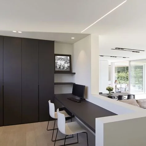 You can set up a home office even in smallest apartments. The strategic location of this counter makes it an ideal office desk for smaller homes and apartments. All you need for an office is a long table, a chair and a few feet of space at the back of the living room.
