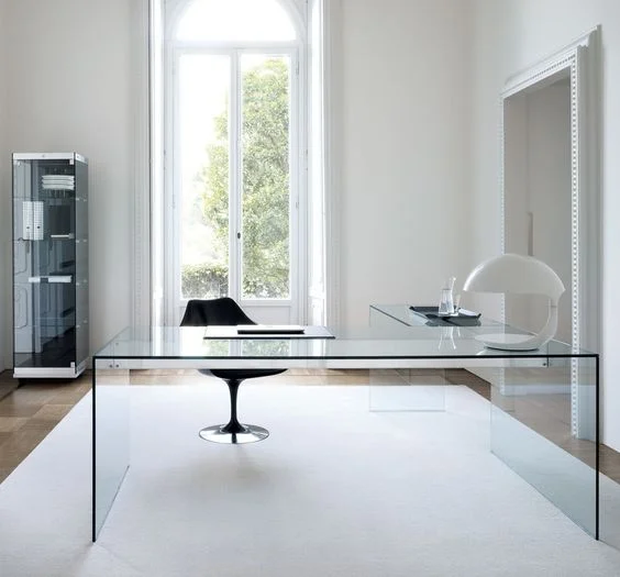 This airy, barely-there office desk is surprisingly spacious and efficient. The L-shaped desk offer ample workspaces. Complement the invisible glass desk with minimalist interiors and elegant accents.