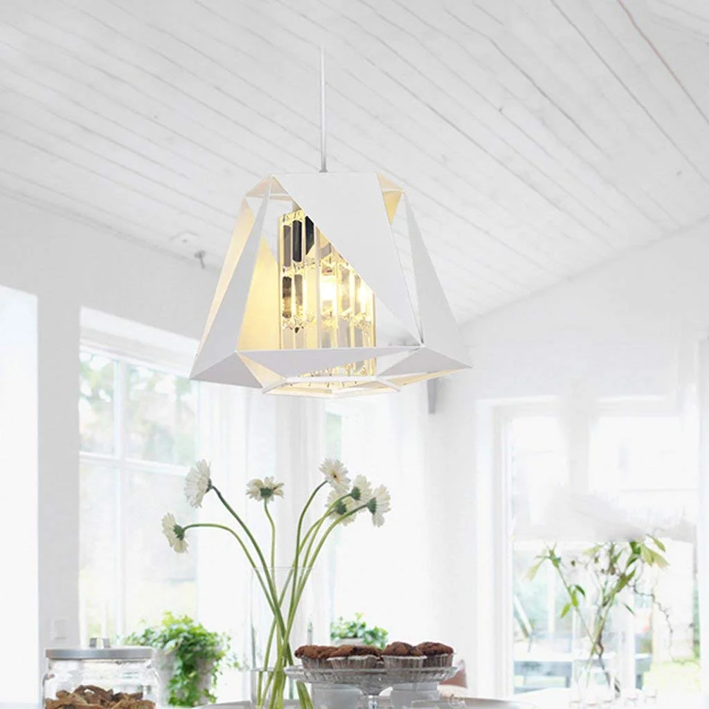 Made of white wrought iron panels and elongated prism crystals, this chic white pendant lamp delivers an updated and streamlined look from a classic design. The white classy style will complement most interior styling – modern, minimalist and cottage designs.