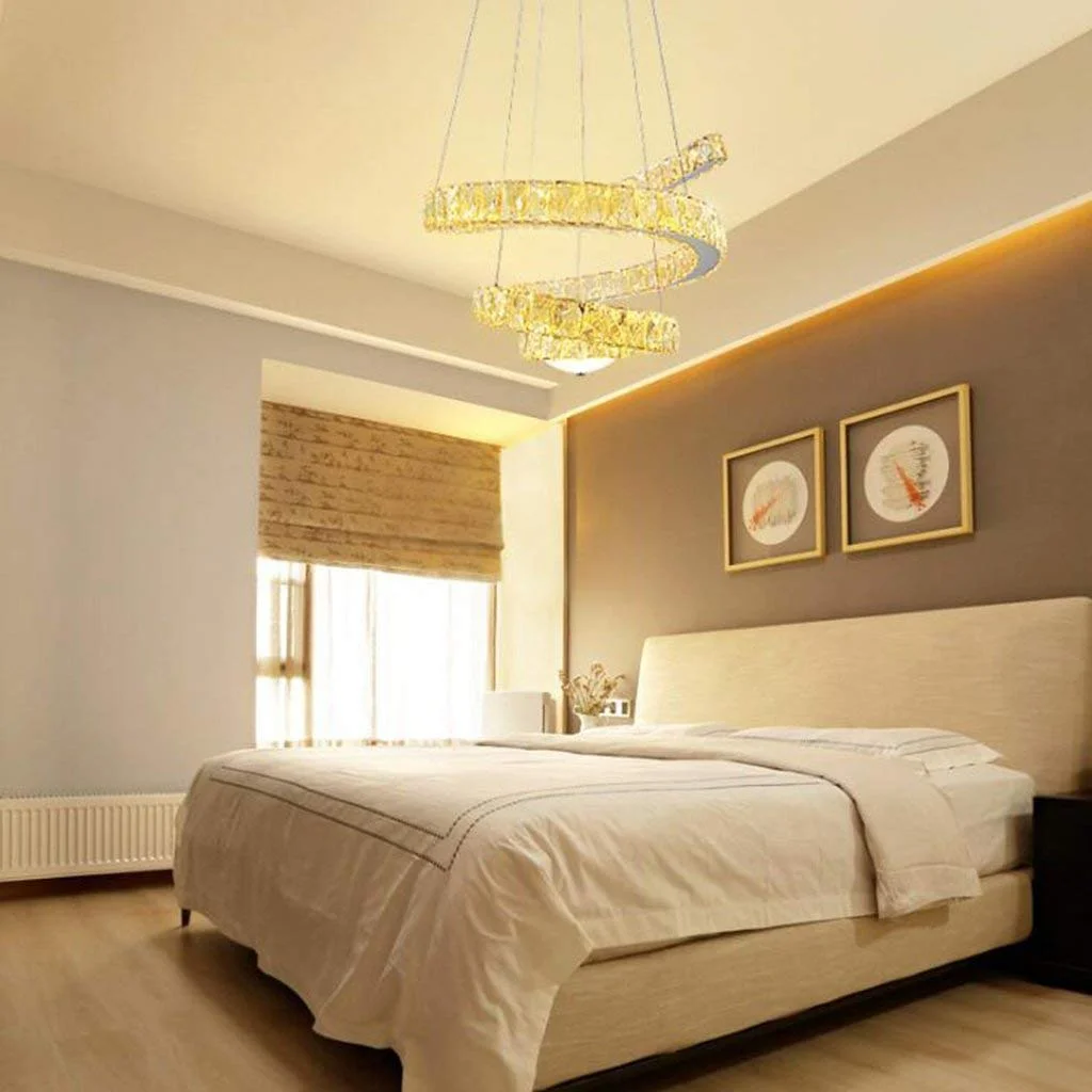 This marvellous chandelier features a spiral strip of stainless steel lined with yellow crystals. The delicate yet bold design is sure to mesmerise. Best for the living room, the master bedroom, foyer or grand dining rooms.