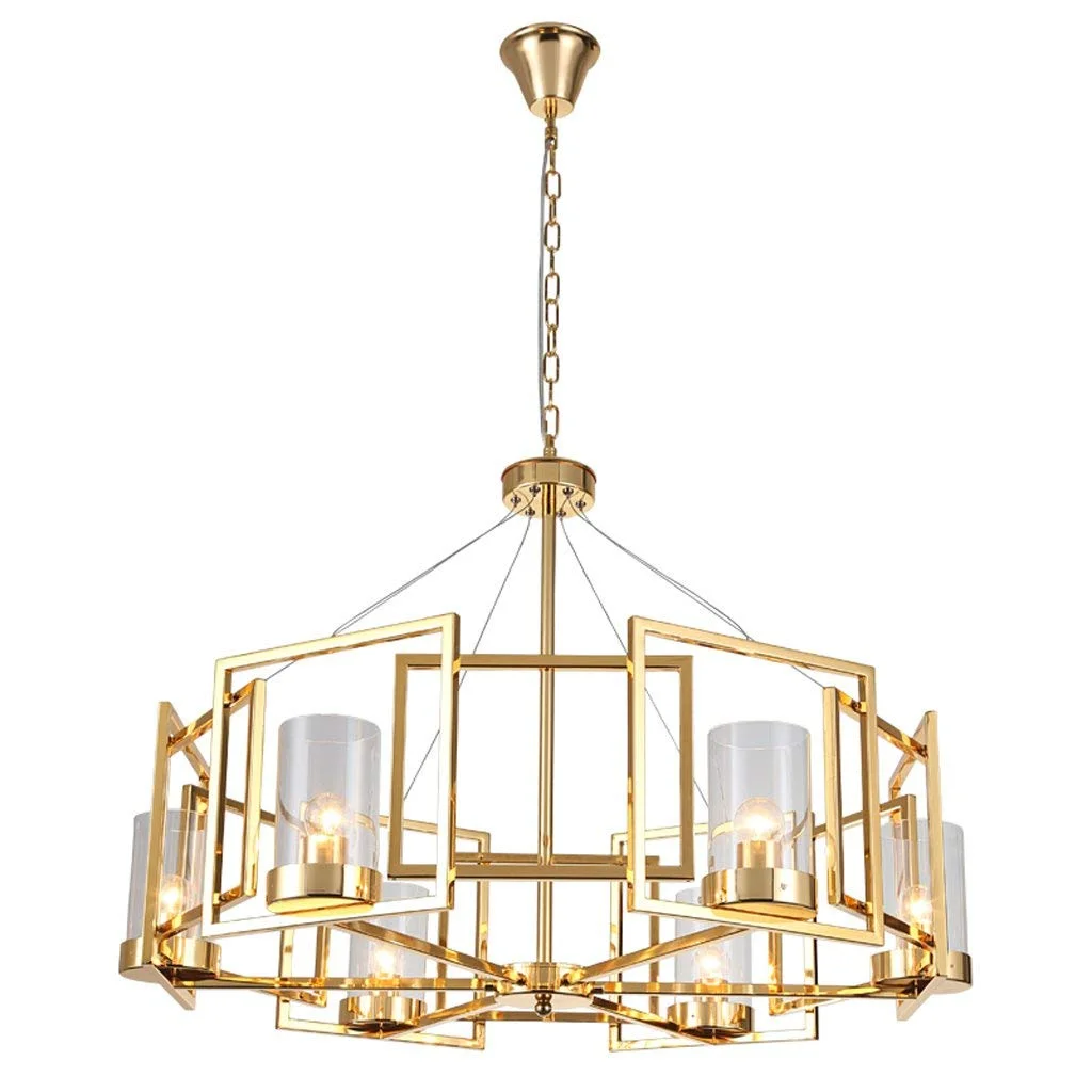 Sleek, elegant and classy. This round modern chandelier features clear glass panels secured to gold frames and connectors. The tasteful combination of gold and glass delivers an exquisite piece of art to the room.
