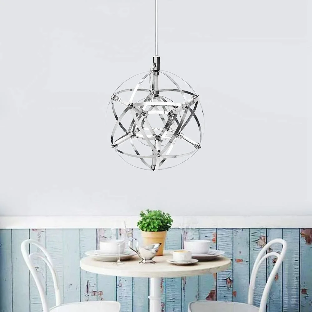 Trendy and ultramodern, edgy and beautiful. This silver light ball creates a subdued presence. Its masterful craftsmanship shines through its silver spines and classic shape. This lamp can light up the dining room, kitchen, living room or the bedroom.