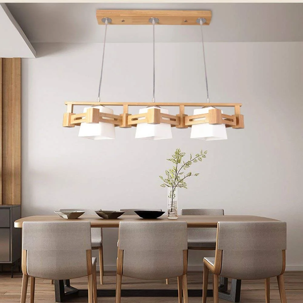 The Scandinavian minimalist design and rustic charm are apparent in this three-pendant chandelier. The frosted white shades tone down the glare to soft light, while the natural wood brace gives the chandelier its rustic vibe. Here are other fantastic modern rustic interior design ideas.