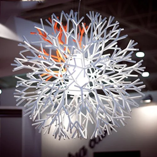 Creative, minimalist, edgy. This unique resin chandelier is modern and funky. Looking like a ball of twigs, it perfectly diffuses the light from its centre, giving the room a soft lighting. The simple yet eye-catching design is best for the bedroom, the living room, dining room or study.