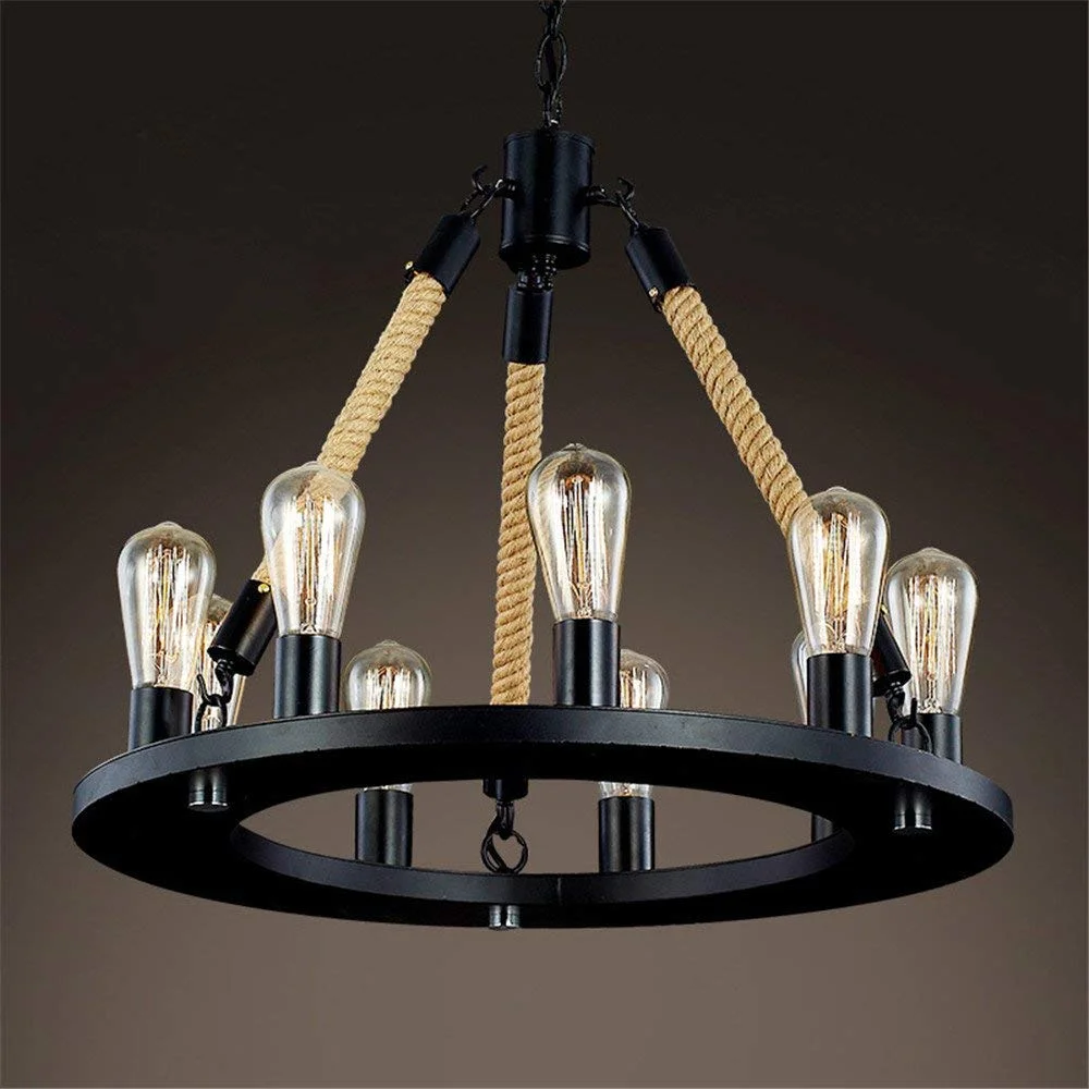 Stripped down chic. Its pitch-black iron ring, canopy and chains give a modish industrial look while the cordage connector gives a hint of rustic. The upright clear bulbs reminisce the classical beauty of Victorian chandeliers.