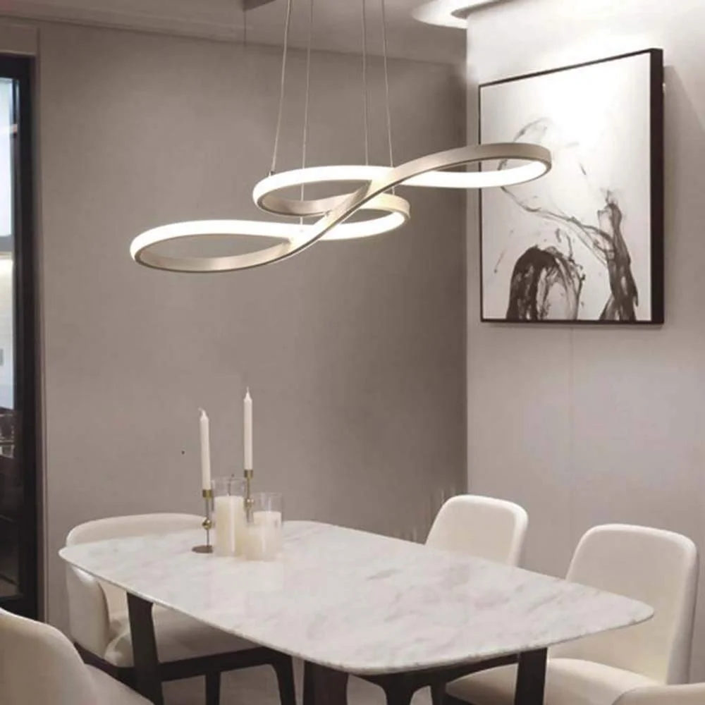 Modern and stunning! This wrought iron chandelier is unique, stylish and striking. Glowing with soft ambient light, this is perfect for intimate spaces like the dining area, living room or the bedroom. Made of high-quality aluminium, this one-of-a-kind chandelier also features LED chip lighting.